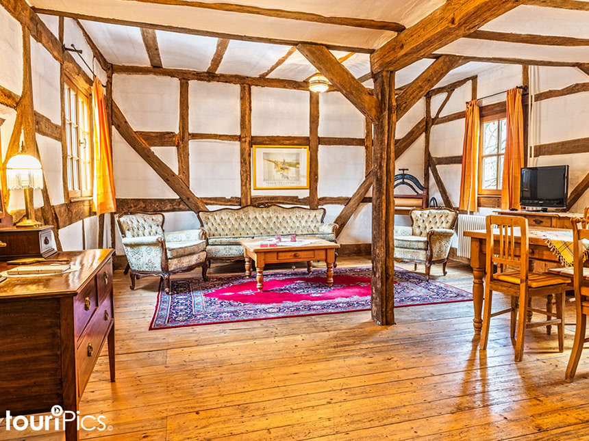 Klein, aber fein: Nur acht Doppelzimmer stehen in Ihrer Romantikresidenz zur Auswahl - sie bestechen jedoch mit einer rundum gelungenen Gestaltung. Die historische Fachwerkbauweise und die architektonischen Gegebenheiten wurden bei der Inneneinrichtung ebenso berücksichtigt wie höchste Ansprüche an modernen Komfort. Insgesamt ergibt sich ein Wohnambiente mit einzigartigem Flair. Neben exklusiv gestalteten Bädern umfasst die Ausstattung ein massives Holzbett, einen Fernseher und Echtholzdielen.